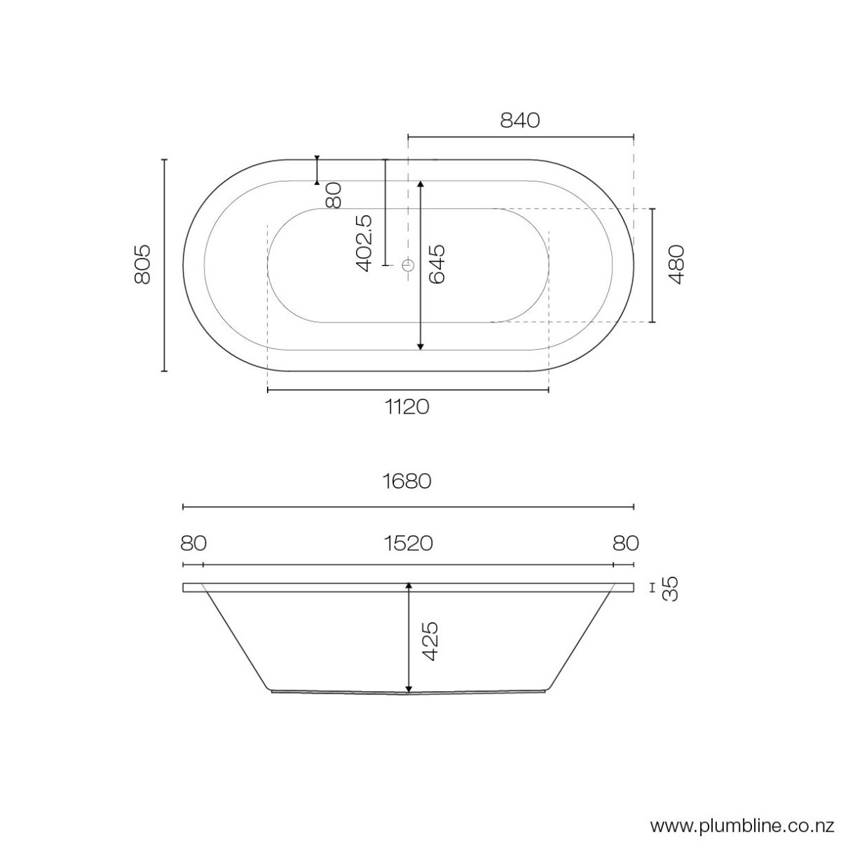Evo 1775 Oval Inset Bath
