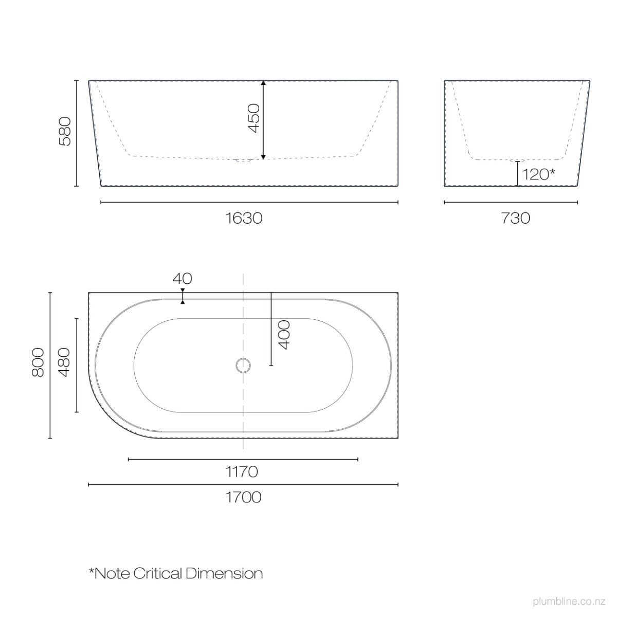 Tondo 1700 Left Corner Back To Wall Bath