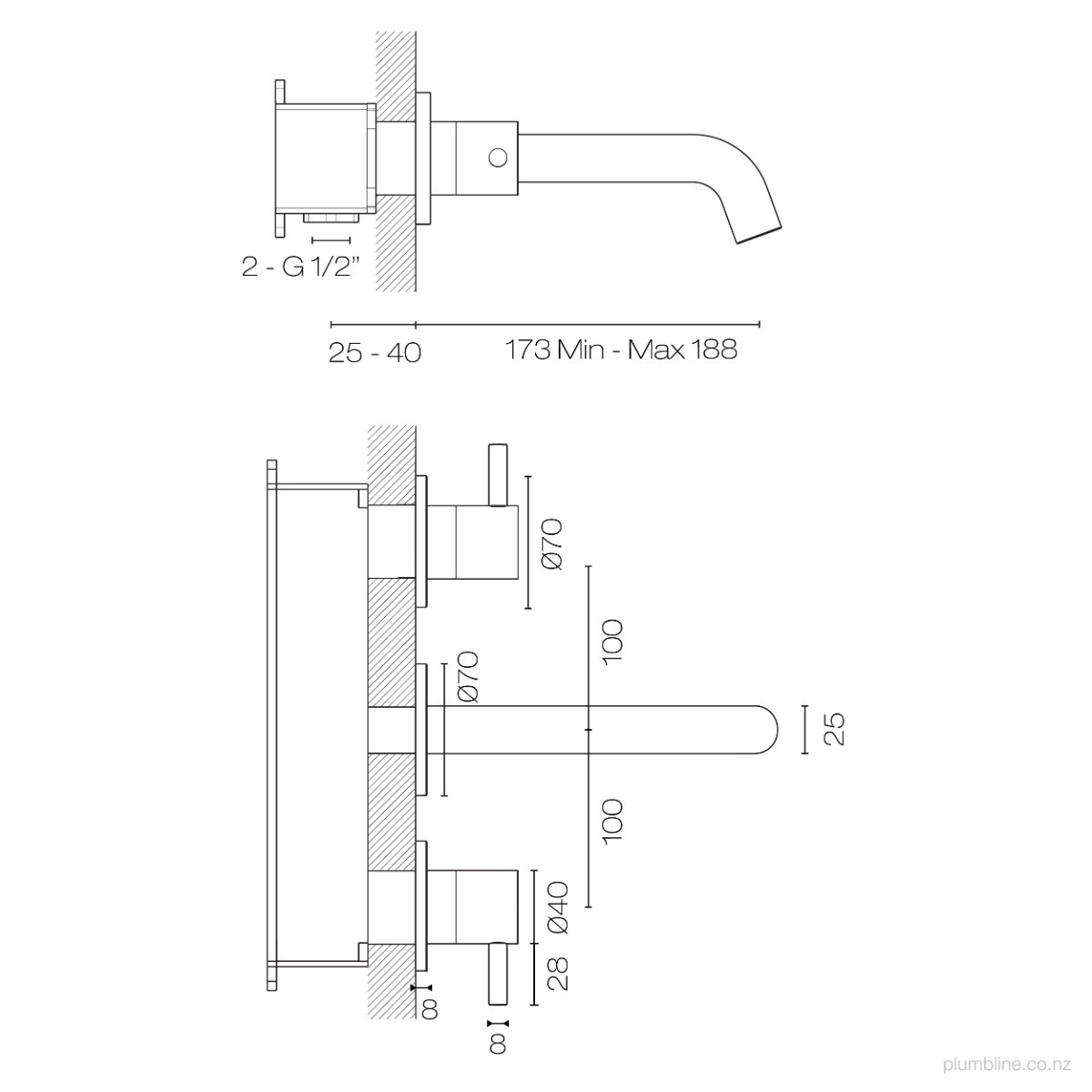 Buddy 3 Hole Wall Mount Mixer With Backplate