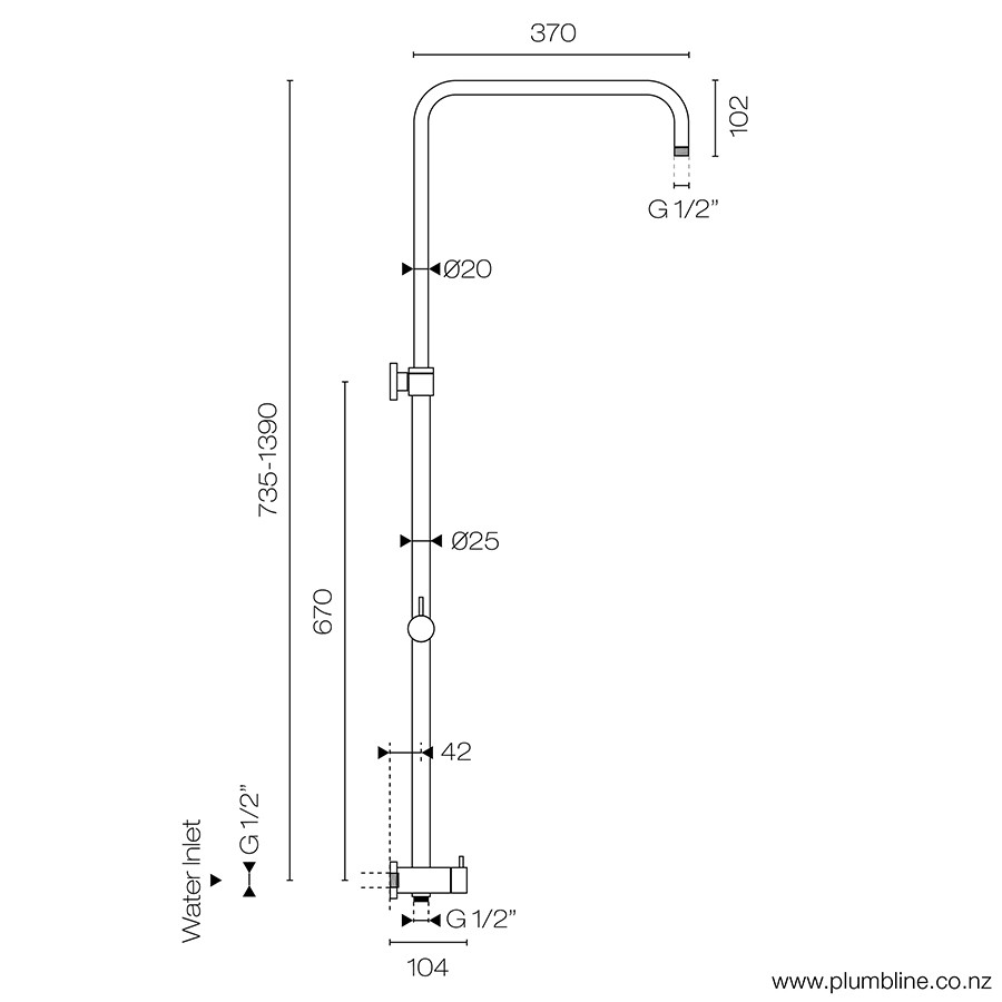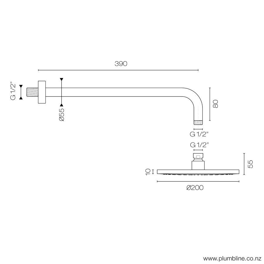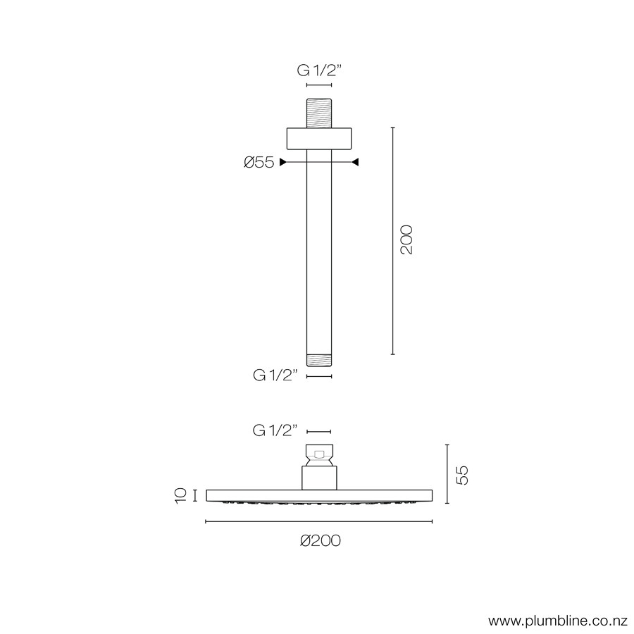 Tube Round Shower Column Matt Black With 200mm Rainhead