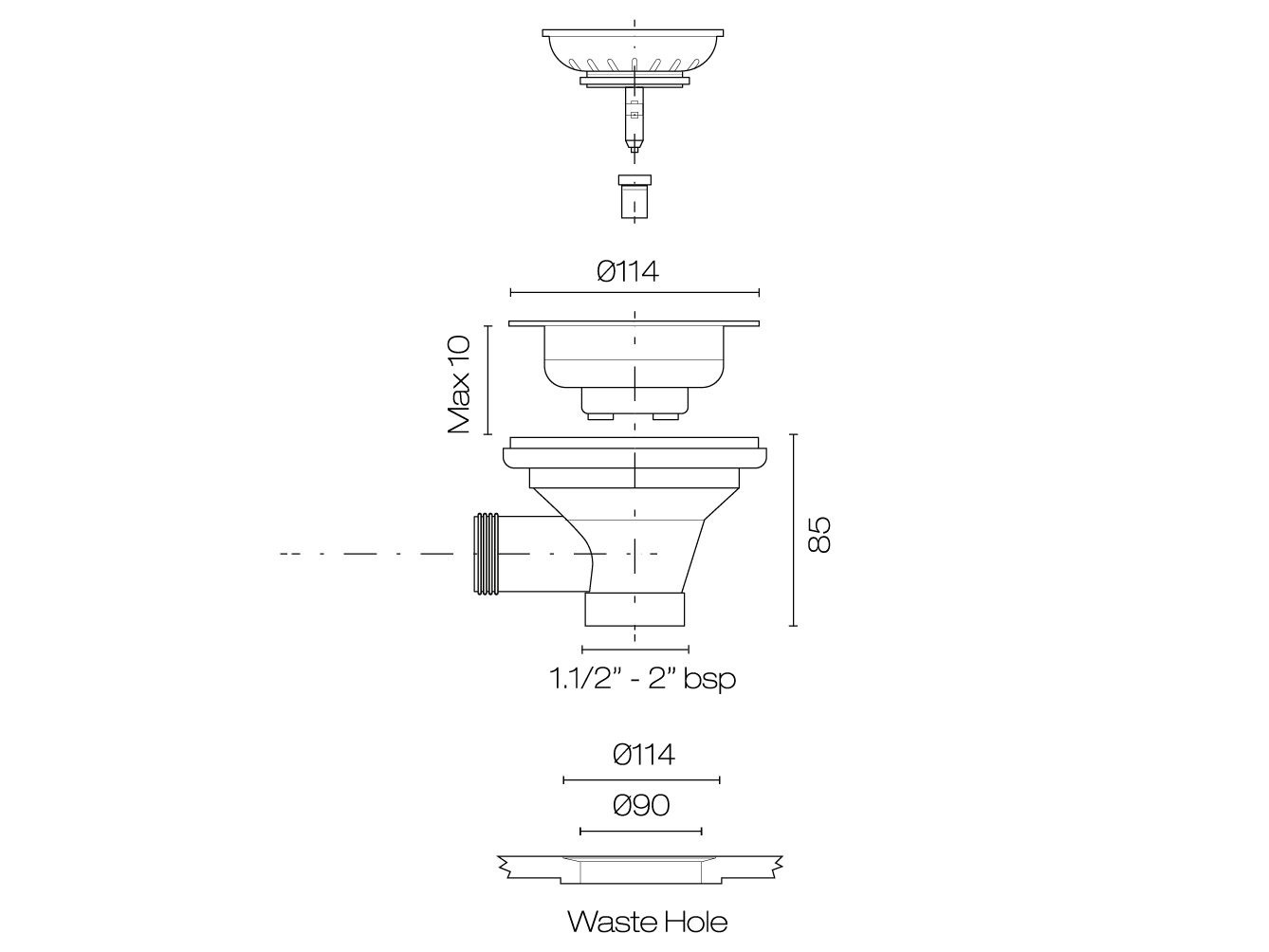 Vaskeri Laundry Tub Waste No Overflow